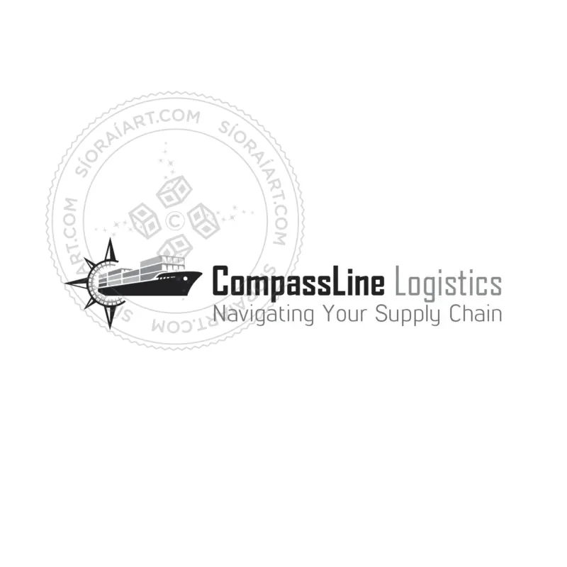 This logo represents maritime shipping, logistics, and global trade. The cargo ship with stacked containers signifies international freight movement, while the compass and railway track integration suggest multimodal transport, navigation, and efficiency.