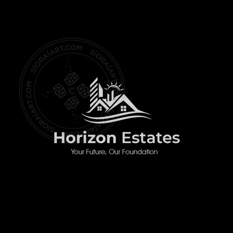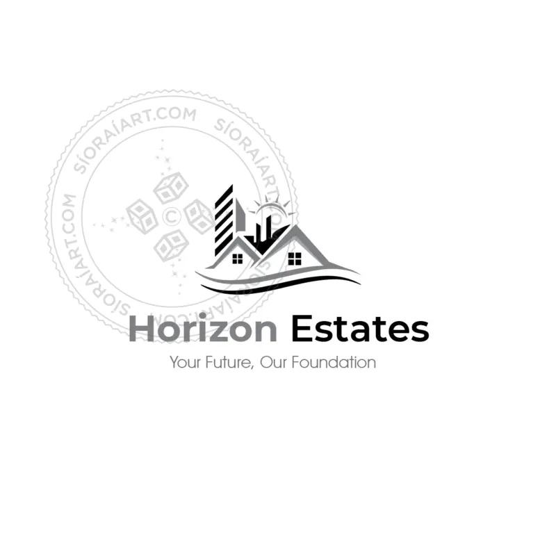 This logo represents a real estate or construction-focused brand. It features a combination of residential houses and modern high-rise buildings, indicating a diverse portfolio in property development, real estate sales, or architecture. The sun rising in the background symbolizes growth, opportunity, and a bright future, while the flowing lines at the bottom evoke stability, trust, and professionalism. The use of blue tones conveys reliability and security, while the orange sun adds warmth and optimism.