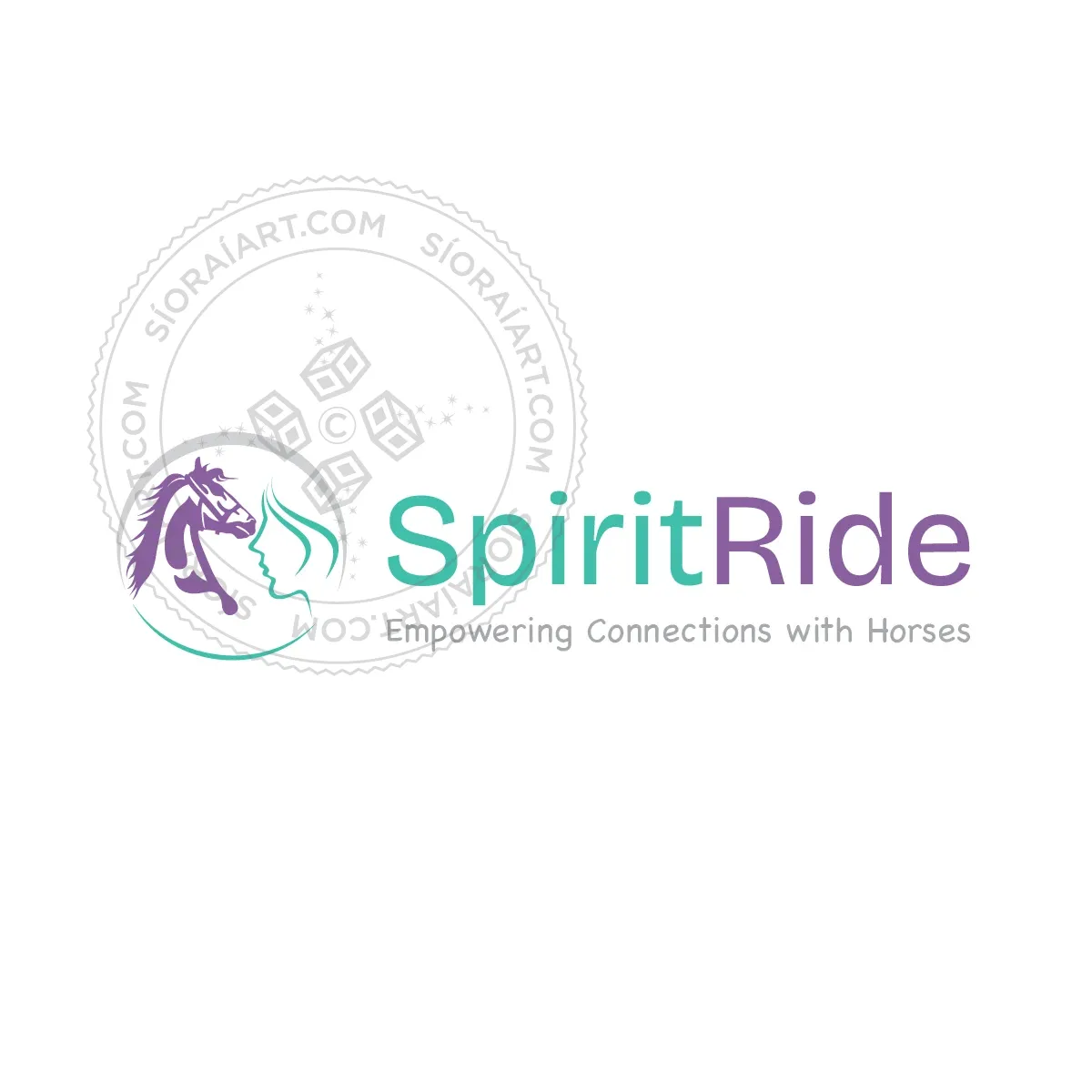 This logo presents a stylized image of a horse and a human face enclosed in a semi-circular frame. The horse, drawn in bold purple lines, conveys strength, grace, and vitality, while the soft aqua outline of the human face reflects calmness, empathy, and connection. The mirrored positioning of both figures suggests a harmonious relationship between human and animal, ideal for brands related to equine therapy, veterinary services, horse training, or holistic wellness that includes animals.